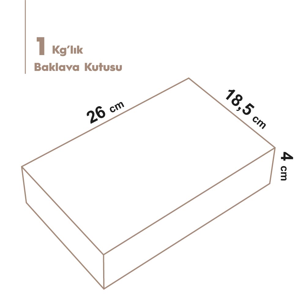 - 1 kg’lık Baklava Kutusu: 26 x 18,5 x 4 cm