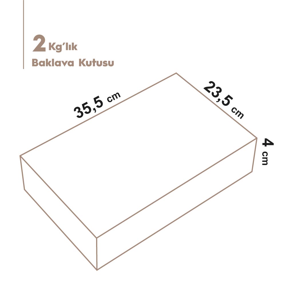 - 2 kg’lık Baklava Kutusu: 35,5 x 23,5 x 4 cm