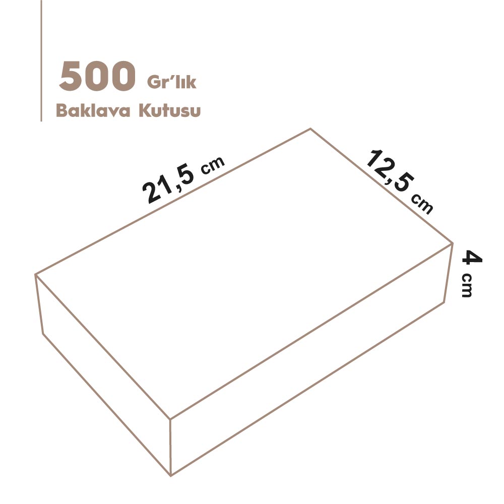 - 500 gr’lık Baklava Kutusu: 12,5 x 21,5 x 4 cm